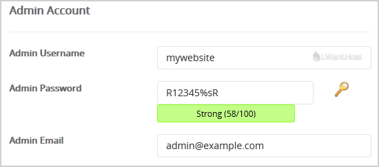• Admin Username: Your new Drupal username (for security reason do not use the "Administrator" or the "Admin" username.